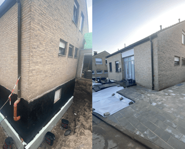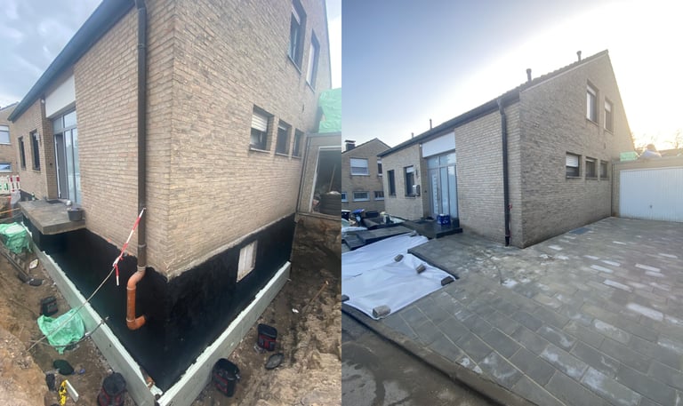 Erneuerung einer schadhaften Kellerabdichtung und Isolierung der Kellerwände mit anschließender erneuerung der Aussenanlagen und Umbau des Kellers zum Heimkino und Büroräumen.